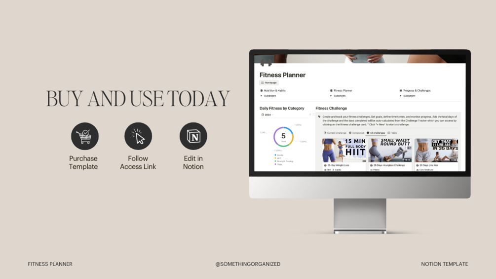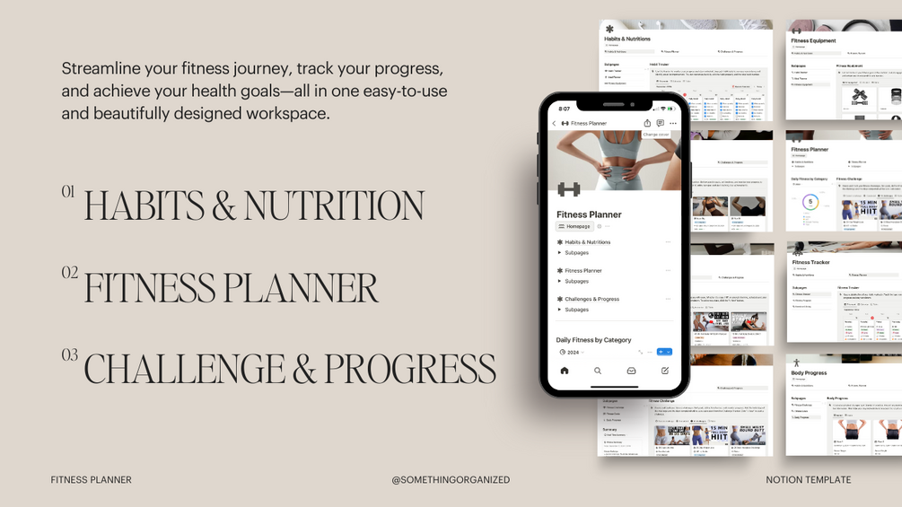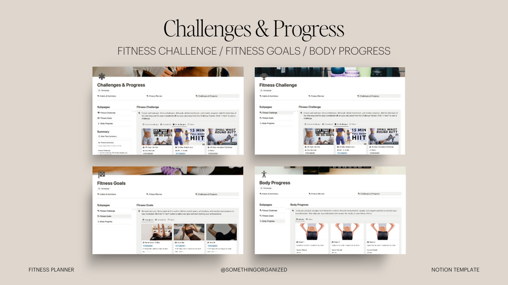 Fitness Planner Notion Template, Workout Tracker, Weight Loss Journey, Fitness Challenge, Health