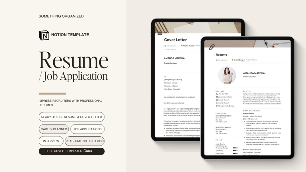 Resume & Job Application Notion Template, Career Planning